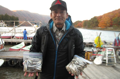 梶原さん 2450g 浮き桟橋北 大口さん 1140g 水深13m 関口さんグループ 湖北 1Kg弱